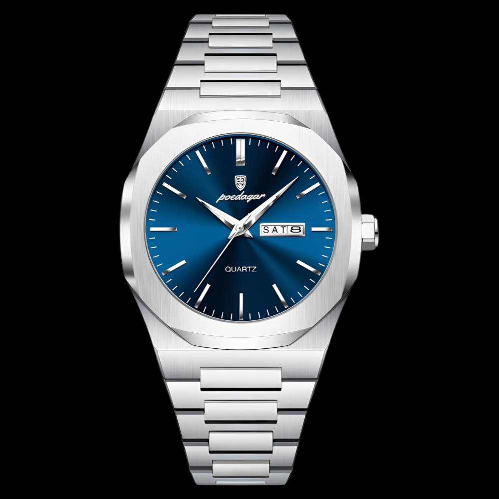 Iconic design. This timepiece pairs a captivating azure-blue dial with a brushed steel case and integrated bracelet. A high-precision quartz movement ensures it is always ready for your moment.